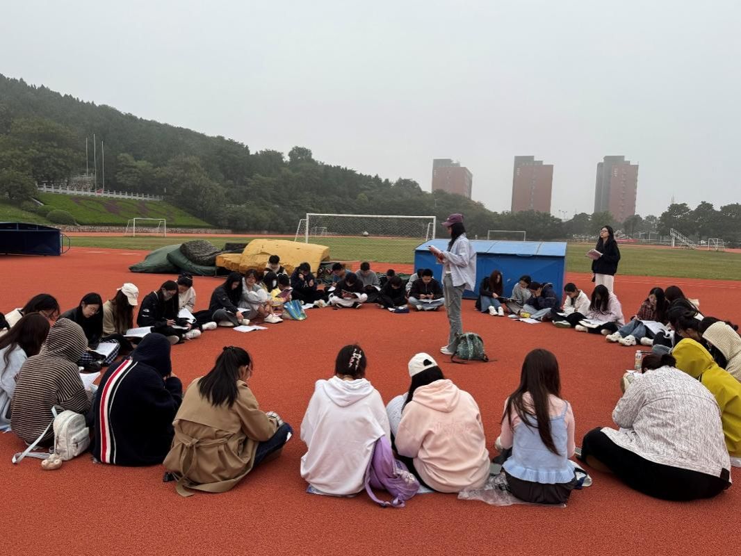 活动每日早晨早自习时间,在洞山校区操场准时开展。在学院英语口语尖兵队成员的带领下,同学们或围坐成圈,或有序排列,手持英语资料,在开阔的操场环境中,或专注朗读,或与身边同学交流探讨。操场的红色跑道、色彩斑斓的看台,以及周围绿意盎然的景色,为英语早读营造出别样的学习氛围。