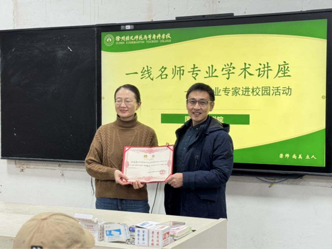 活动伊始,花萌院长向在场师生介绍了刘潇老师的专业背景与教学成就,强调此次讲座是学院“行业专家进校园”系列活动的重要环节,旨在搭建一线教学实践与师范教育衔接的桥梁,让师范生近距离汲取优秀教师的教学智慧,为未来走上讲台做好准备。 花院长为刘老师颁发聘书,聘请她担任国际教育学院的校外指导教师。